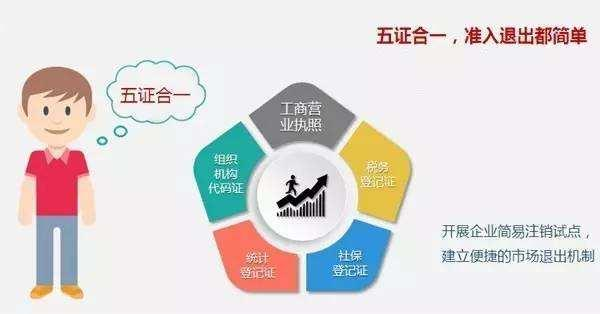 五证合一中的五证是指营业执照、组织机构代码证、税务登记证、社会保险登记证、统计登记证。