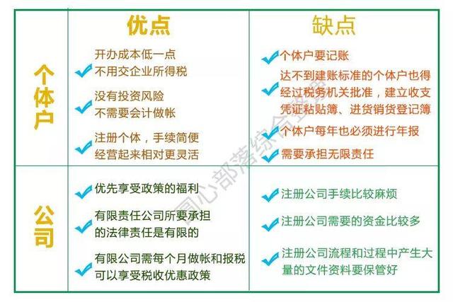 对于注册个体户或公司,都有哪些优缺点呢?看完这表格你就明白了~~